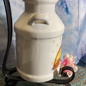 Vintage Ceramic Jug Milk Can Container Storage Farmhouse Rooster Floral