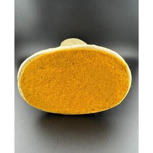 There is a distinct "Y" marking on the front of the boot. I have been unsuccessful identifying it. This is a smooth ceramic finish. It feels like it has been glazed, but it is not a glossy finish. Felt bottom is in-tact as seen in the photos. Additional cleaning may be required. I am unable to find any chips or cracks. Please feel free to reach out with any questions. Thank you!