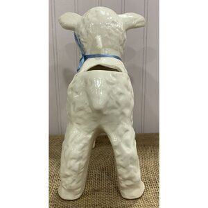 Vintage Ceramic Lamb Planter With Blue Bow & Pink Ears