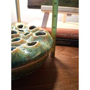 Vintage Ceramic Lotus Pod Flower Frog With Lid Turquoise Beige Glaze