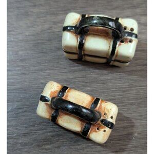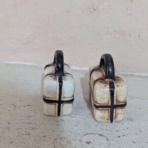 Vintage Ceramic Luggage-Themed Salt & Pepper Shakers 2.5" Pair Quirky Retro Mini