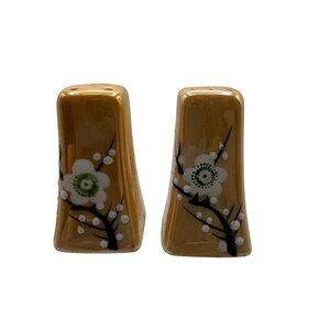 Vintage Ceramic Lusterware Salt & Pepper Shakers With Handpainted Floral