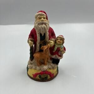 Vintage Ceramic MCM Santa Claus Figurine Little Girl Feeding Baby Reindeer Rare