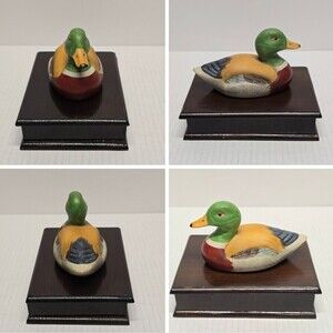 Vintage Ceramic Mallard Duck Card Deck Box / Wood Storage Box with Cards NEW