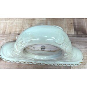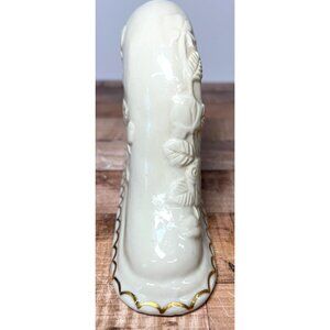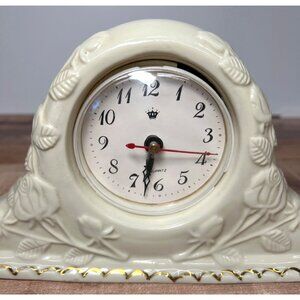 Vintage Ceramic Mantel Clock With Rose Embossed Design & Gold Trim