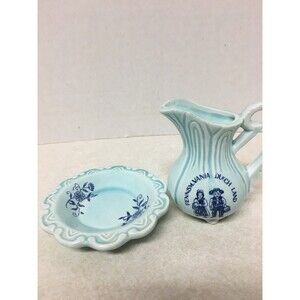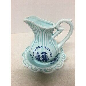 Vintage Ceramic Miniature Blue Pitcher & Basin Under Plate Saucer Japan