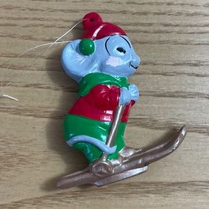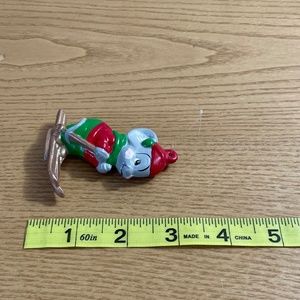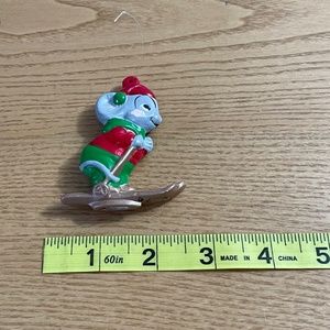 Vintage Ceramic Mouse Christmas Ornament Handmade Mice On Skis Skiing 1990 3"