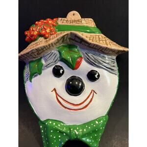 Vintage Ceramic Mrs Snowman Face Ornament.