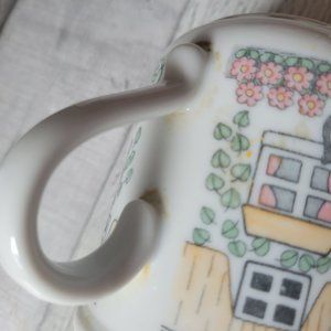 Vintage Ceramic Mug With Pastoral Cottage & Animals Print