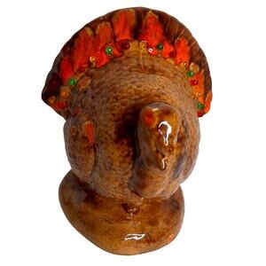 Vintage Ceramic Multicolor Light Up Thanksgiving Turkey