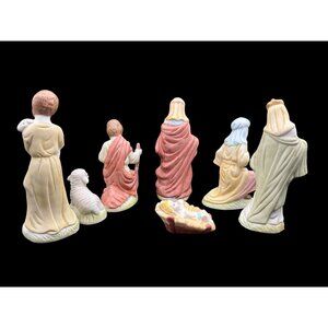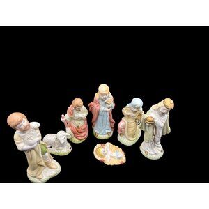 Vintage Ceramic Nativity Scene Set Hand Painted Ceramic 7 Pieces