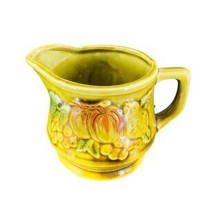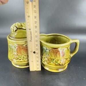 Vintage Ceramic Olive Green Sugar Bowl Creamer Fruit Veggies Made Japan Set