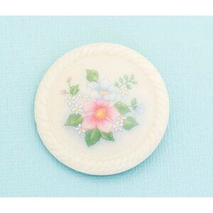 Vintage Ceramic Oval Round Flower Floral Avon Brooch Delicate - E23