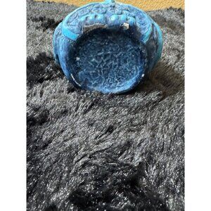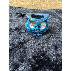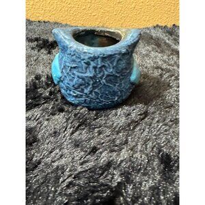 Vintage Ceramic Owl Candle Holder 3" Chubby Blue