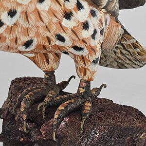 This Vintage Ceramic Owl on a Wood Base Figurine is a hand-painted piece of folk art. Its charming design and intricate detailing add a rustic touch to any decor.