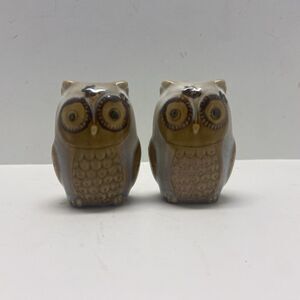 Vintage Ceramic Owl Salt & Pepper Shakers Tan Brown Color 3 in Tall
