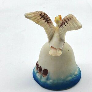 Vintage Ceramic Pelican Shaped Small Porcelain Bell with Beach Pier Scene 3”