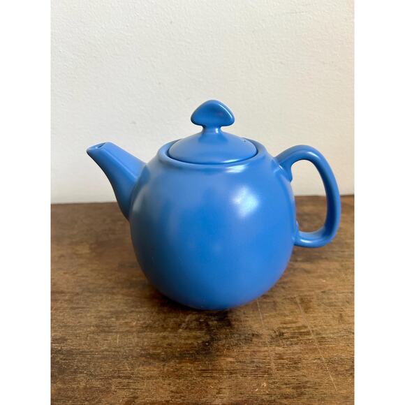 Very charming vintage ceramic teapot in lovely periwinkle hue. Would make a great housewarming or wedding shower gift. In great condition.