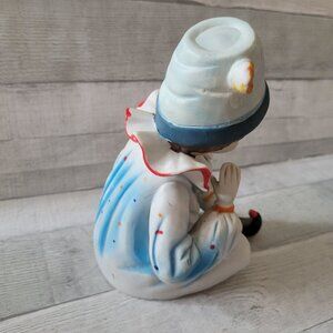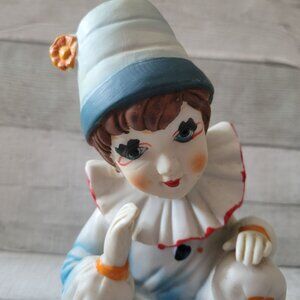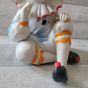 Vintage Ceramic Pierrot Clown Figurine Hand-Painted Sitting Pose 7" Tall