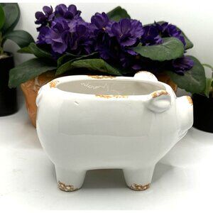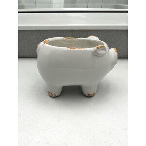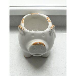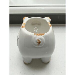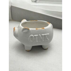 Vintage Ceramic Pig Planter With OINK Text - White & Distressed Orange