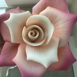 Vintage Ceramic Pink White Single Rose Flower Branch