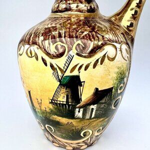 Vintage Ceramic Pitcher Hand Painted Vase Gold Accents