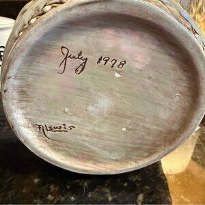 decorative pitcher, signed P. Lewis, 1978 pitcher, collectible ceramic, vintage decor, artistic jug, detailed pottery, unique gift, handmade pitcher, decorative accessory, vintage ceramic pitcher, embossed cherub design, nature-themed pitcher