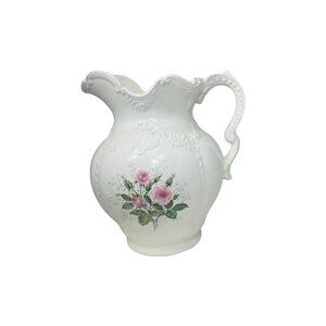 Once upon a time in a quaint village, this ceramic pitcher adorned a charming cottage. With a hand-painted floral design by Carol, it served countless refreshing drinks and held beautiful bouquets, becoming a cherished heirloom. Now, it’s ready to find a new home and continue its tale.