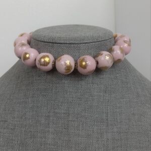 Vintage Ceramic Porcelain Beads Pink Gold Choker