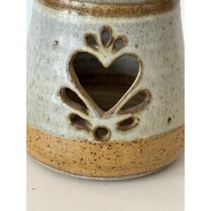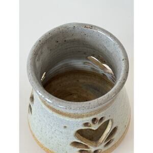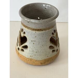 Vintage Pottery Candle Holder with Cut Out Hearts