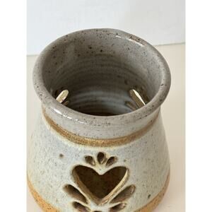 Vintage Ceramic Pottery Stoneware Candle Holder Cut Out Hearts Grannycore
