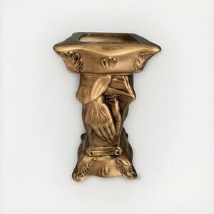 This vintage ceramic vase features a beautiful painting of praying hands, perfect for any church decor. The gold signature adds a touch of elegance to this handcrafted piece. Made from high-quality ceramic, this vase is a great addition to any collection of collectibles related to religion and spirituality. The vase is perfect for displaying flowers or as a standalone decorative item.