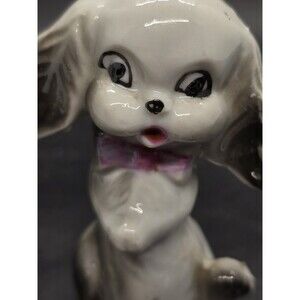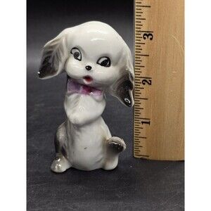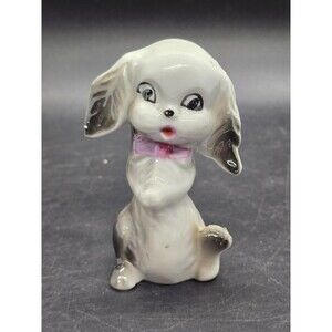Vintage Ceramic Puppy Dog Cocker Spaniel Figurine Pink Bow Made in JAPAN 3"