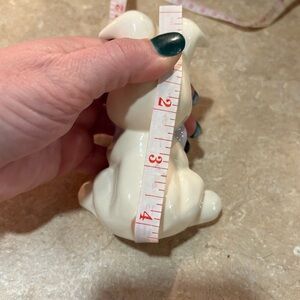 Charming ceramic bunny figurine with blue accents. Perfect for home decor.
