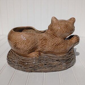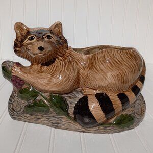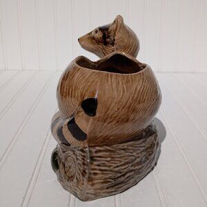Vintage Ceramic Racoon Planter Flower Pot MCM Handmade in Tennessee Pottery