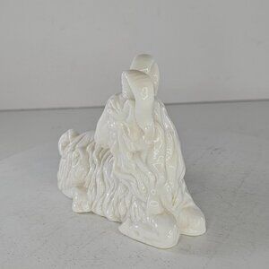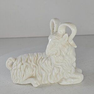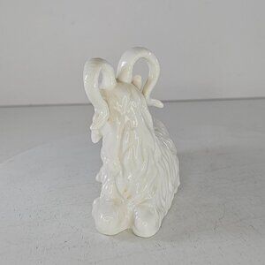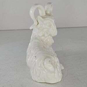 Vintage Ceramic Ram Figurine White Bighorn Sheep Goat Curved Horns *Chip*