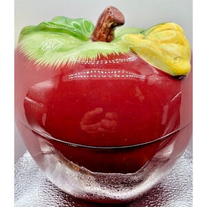 Vintage Ceramic Red Apple Cookie Jar With Lid 8" x 6.5"
