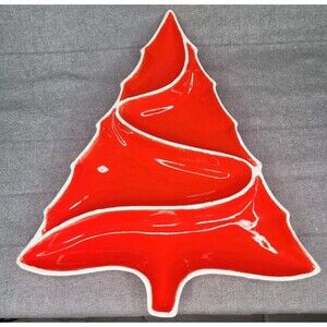 Vintage Ceramic Red Christmas Tree Divided Serving/Candy Dish Atlantic Mold MCM