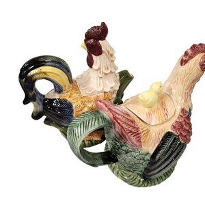 • Chicken Teapot Baby Chicks Hen Rose Garden Ceramic FARMHOUSE Country DECOR 1.5qt. 8.25" tall, 10" long