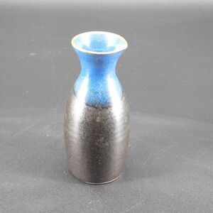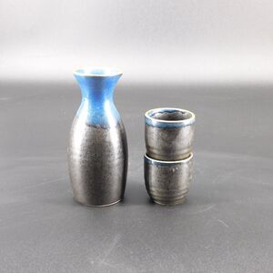 Sake Set Tokkuri (ceramic container) and 2 cups in blues and blacks