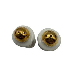 Vintage Ceramic Salt & Pepper Shakers With Floral Pattern & Gold Tops