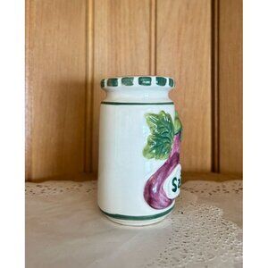 Vintage Ceramic Salt Shaker With Eggplant Leaf Design Cork Stopper Kitchen Decor