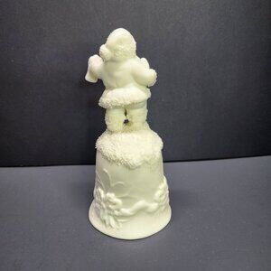 Vintage Ceramic Santa Clause Hand Bell Figurine White 5.5'' Tall