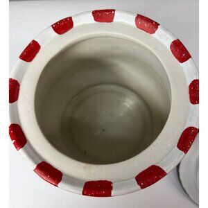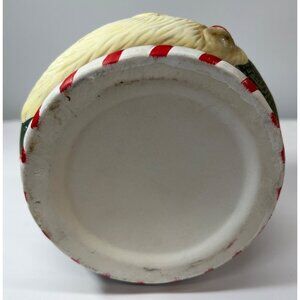 This vintage ceramic Santa cookie jar with lid is a charming addition to your holiday decor. Showcasing vibrant red and green colors, its quality ceramic construction promises lasting use.