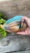 This beautiful conch sea shell shaped planter is blue, tan, cream, purplish, and greenish.