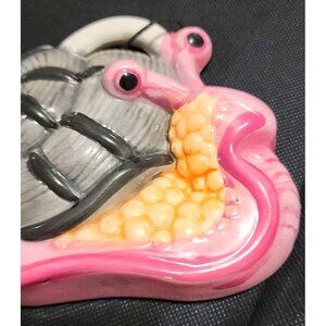 This ceramic snail figurine exudes a charming vintage appeal, with its delightful pink and gray detailing that captures the essence of whimsical, retro decor. A unique addition to any collection, this piece brings a touch of nostalgia and artistry, perfect for adorning shelves or mantels with a quaint, timeless charm.