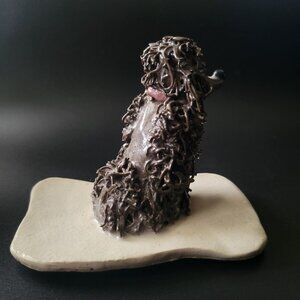 Vintage Ceramic Spaghetti Poodle Dog Figurine On Base, Vintage Dog Figurine