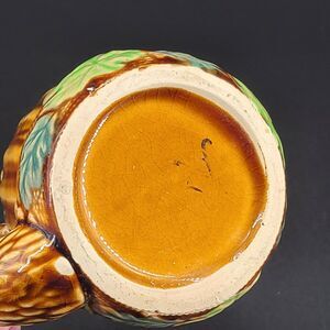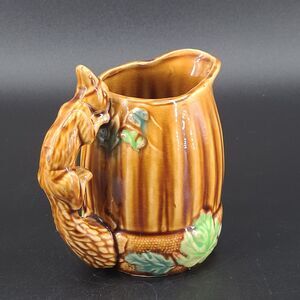 Vintage Ceramic Squirrel Handle Brown Pitcher Creamer Green Leaf