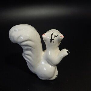 A charming ceramic squirrel figurine displaying a playful stance. Adds a whimsical touch to any shelf or display.