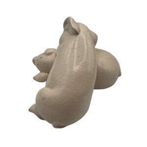 This ceramic pig salt and pepper shaker set features a charming stackable design with a crackle glaze finish. Ideal for collectors or tabletop decor.